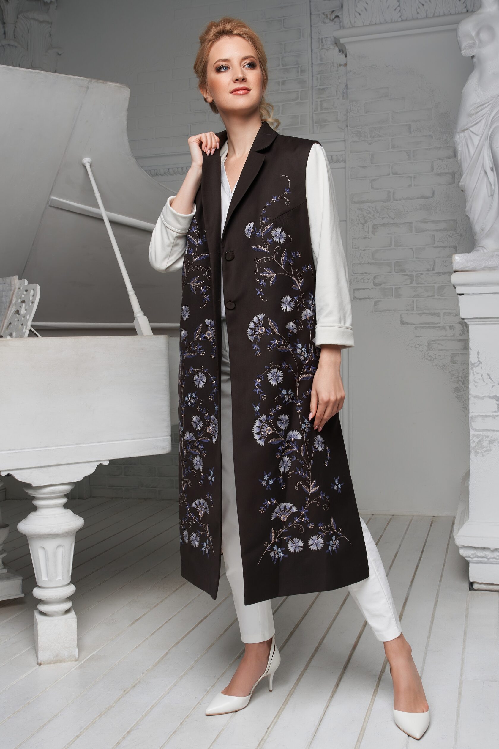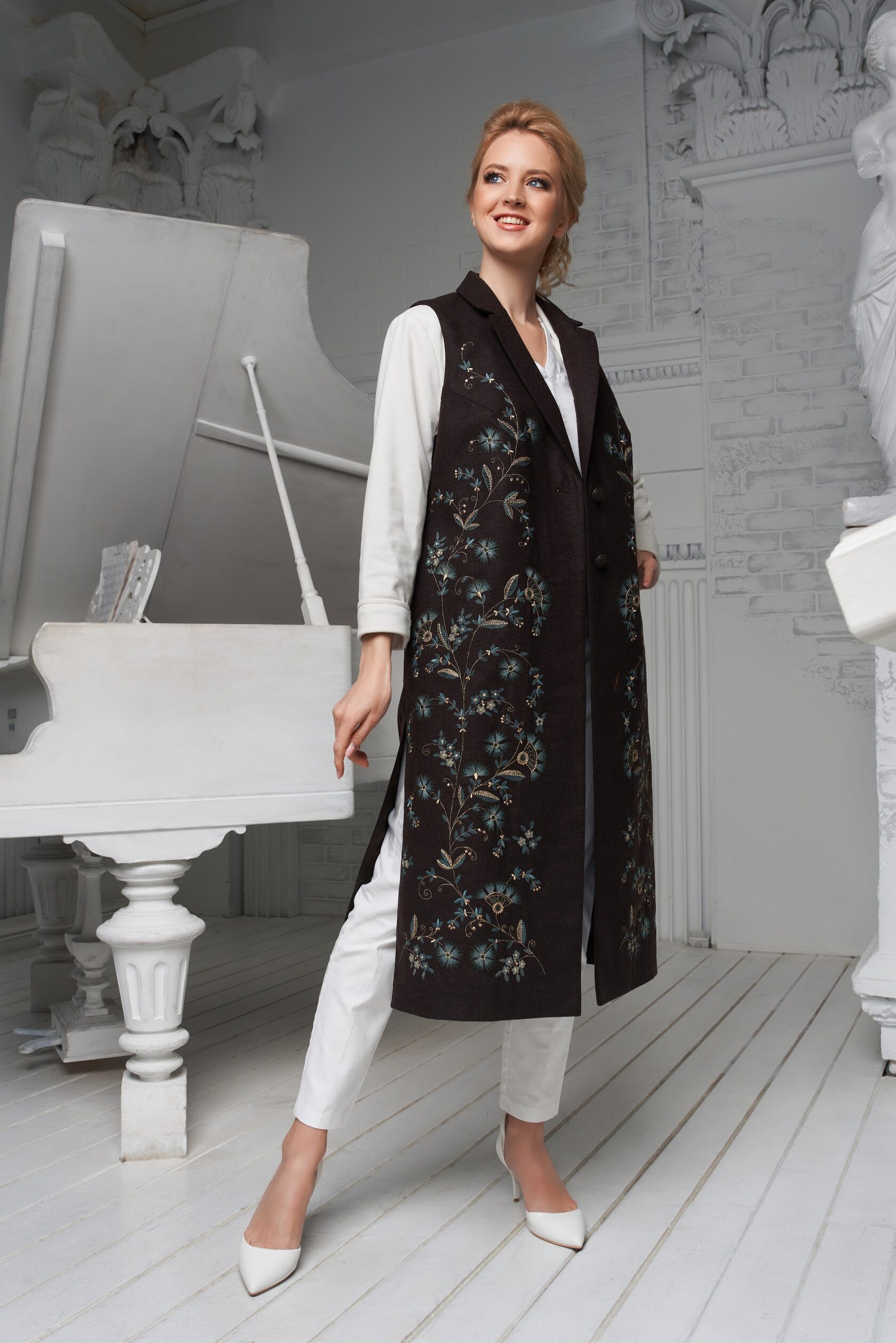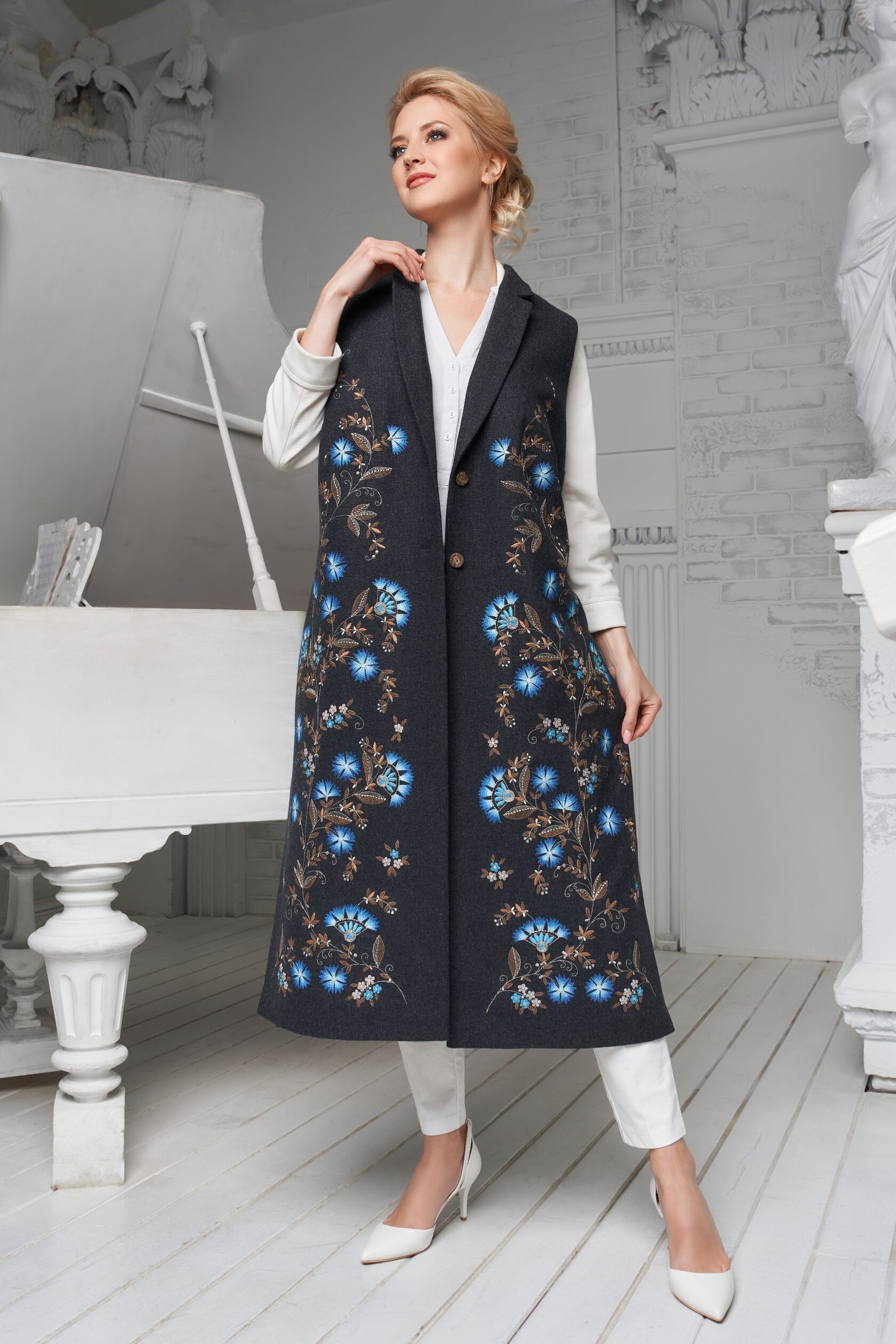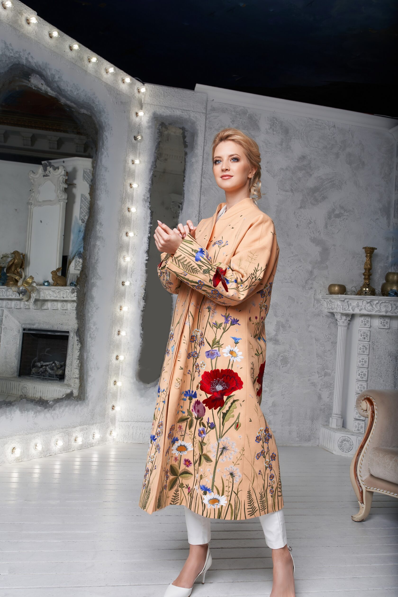Я предложила соединить различия и богатства техник, чтобы создать уникальный образ кружева, орнамента и вышивки… Эта куртка является соединением традиции, мира во всем мире и блага всем нам.