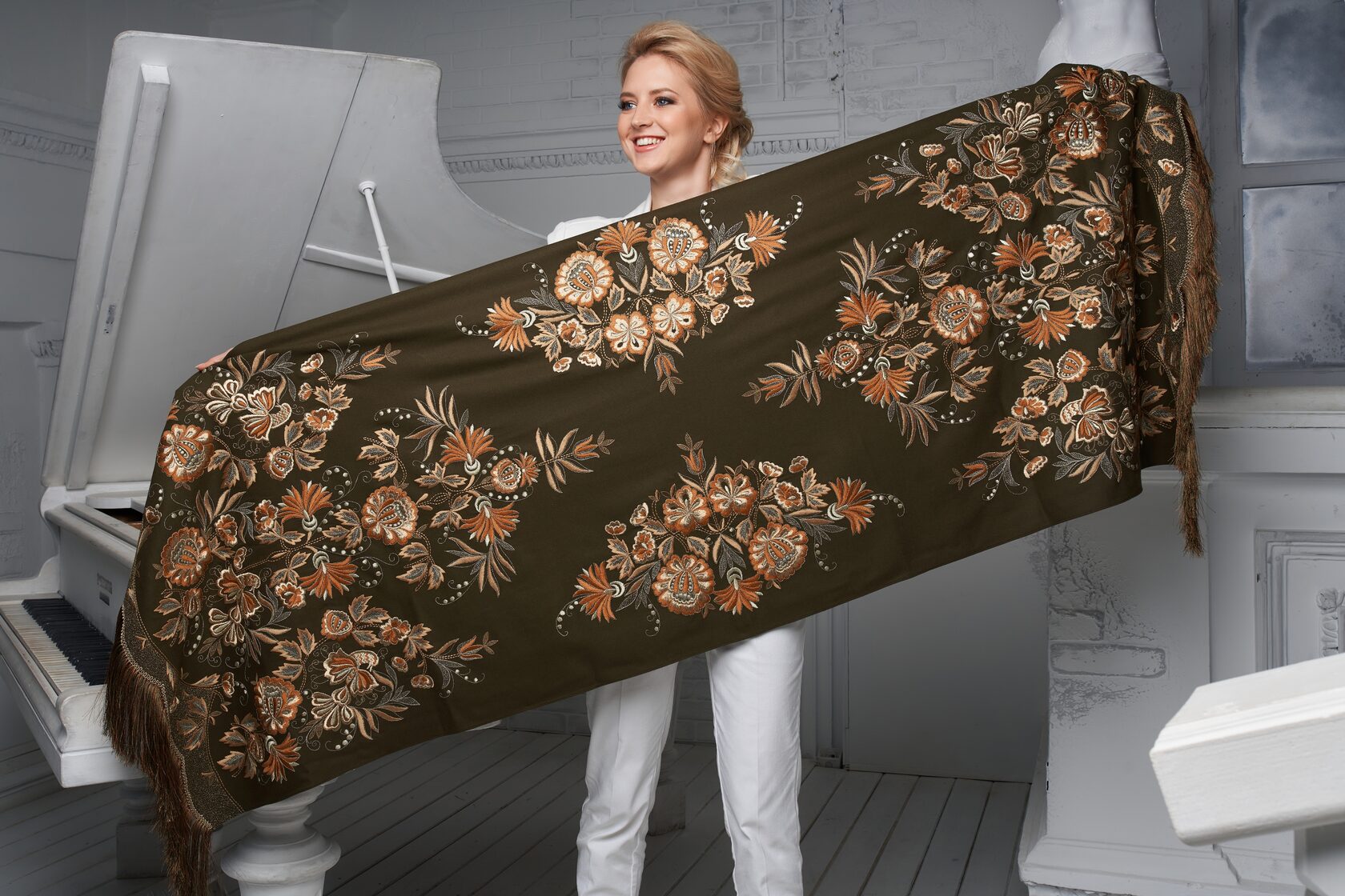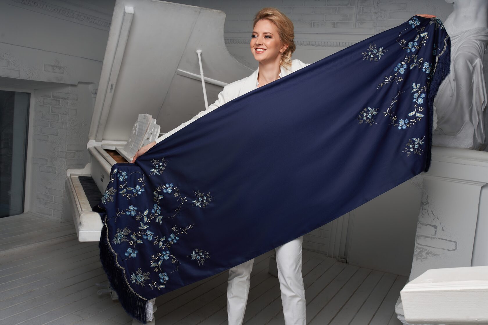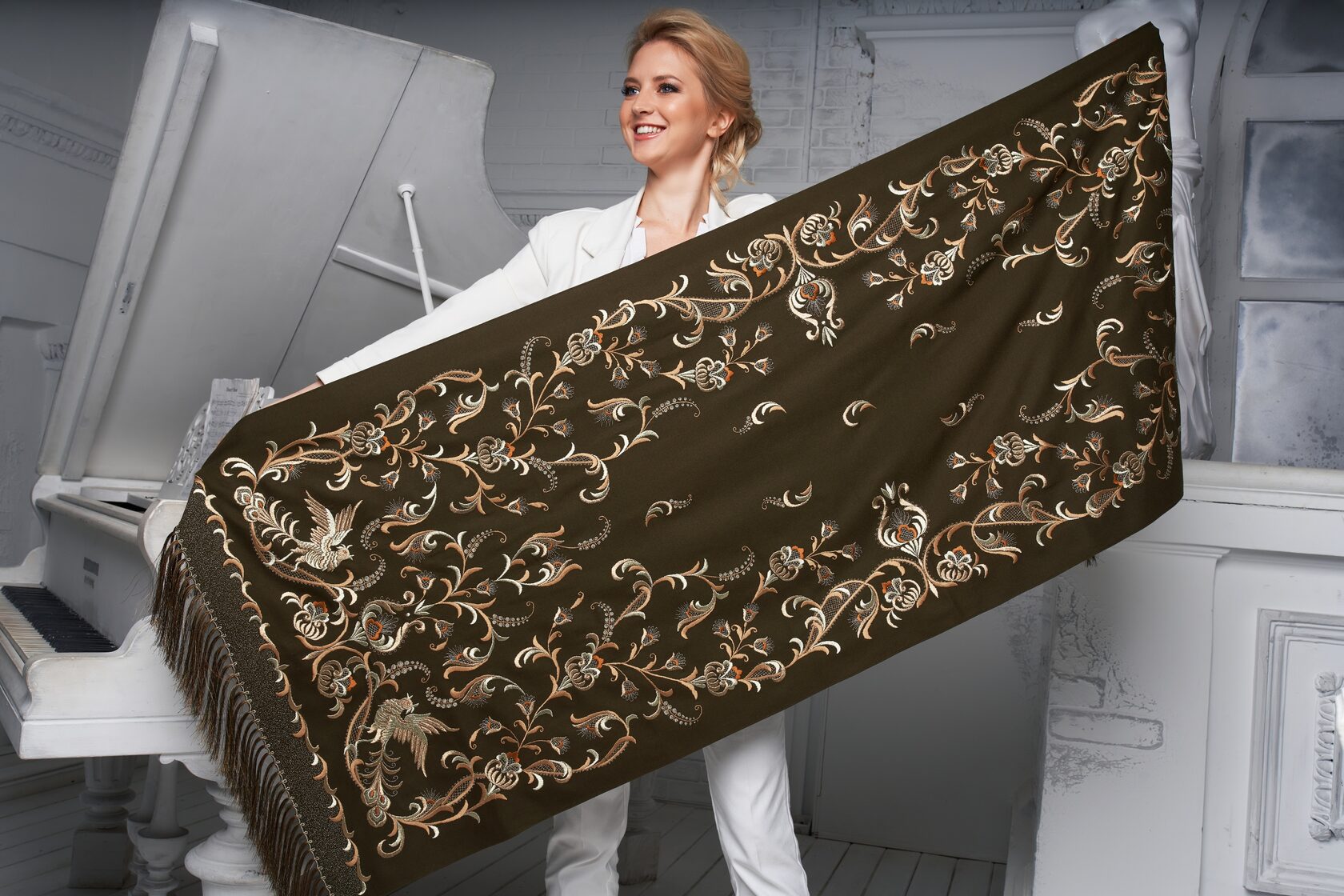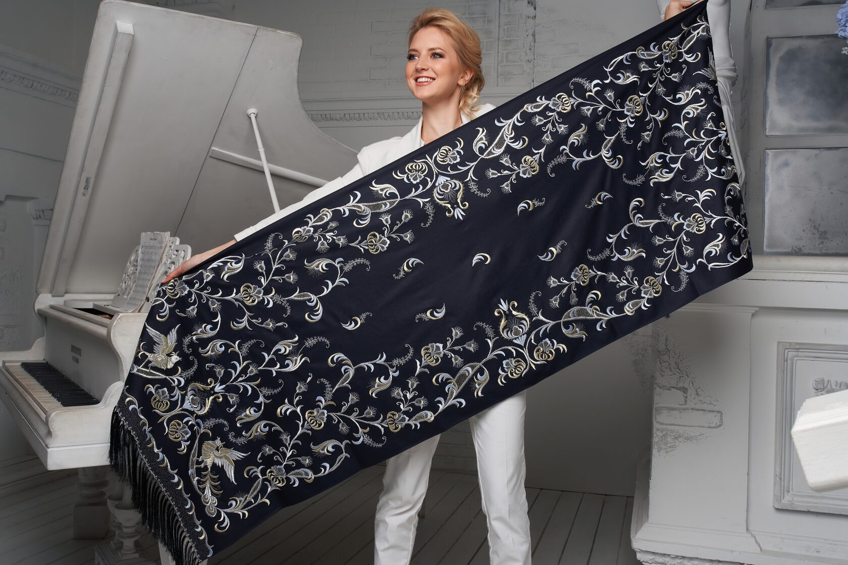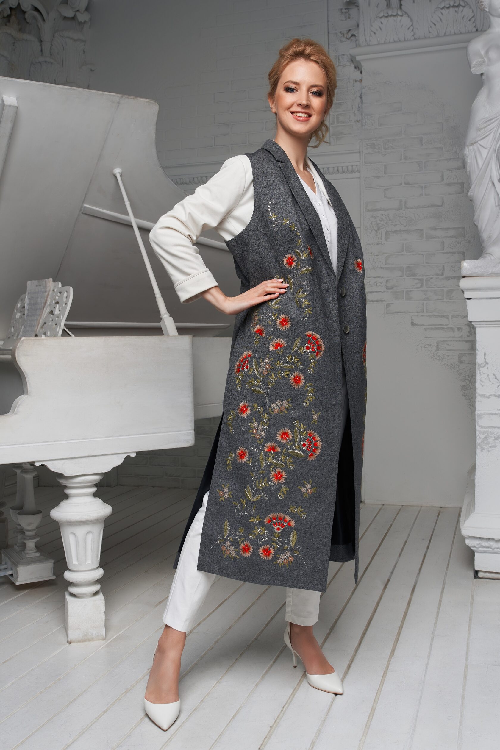 Я предложила соединить различия и богатства техник, чтобы создать уникальный образ кружева, орнамента и вышивки… Эта куртка является соединением традиции, мира во всем мире и блага всем нам.